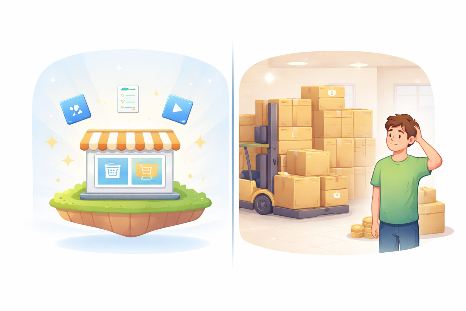 Zero inventory risk. The products are digital. They don’t exist physically. You can’t over-order them. They can’t sit unsold in a warehouse costing you storage fees. They can’t get damaged in transit. They can’t be stranded at a port. When demand for a product drops you simply remove it from your store. No sunk cost. No liquidation problem.